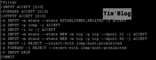 终端上输入 vim /etc/sysconfig/iptables